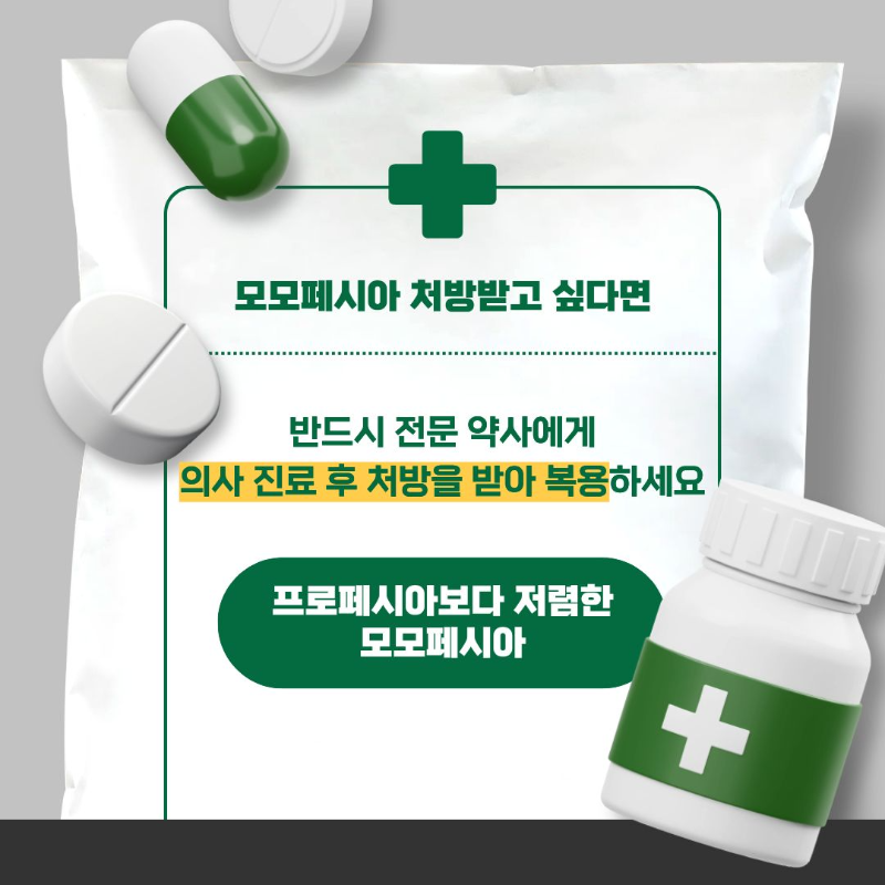 모모페시아를 포함한 모든 탈모 치료제는 반드시 의사 진료 후 처방을 받아 복용해야 하며, 임의로 약물을 구입하거나 복용하는 것은 심각한 부작용을 초래할 수 있습니다.