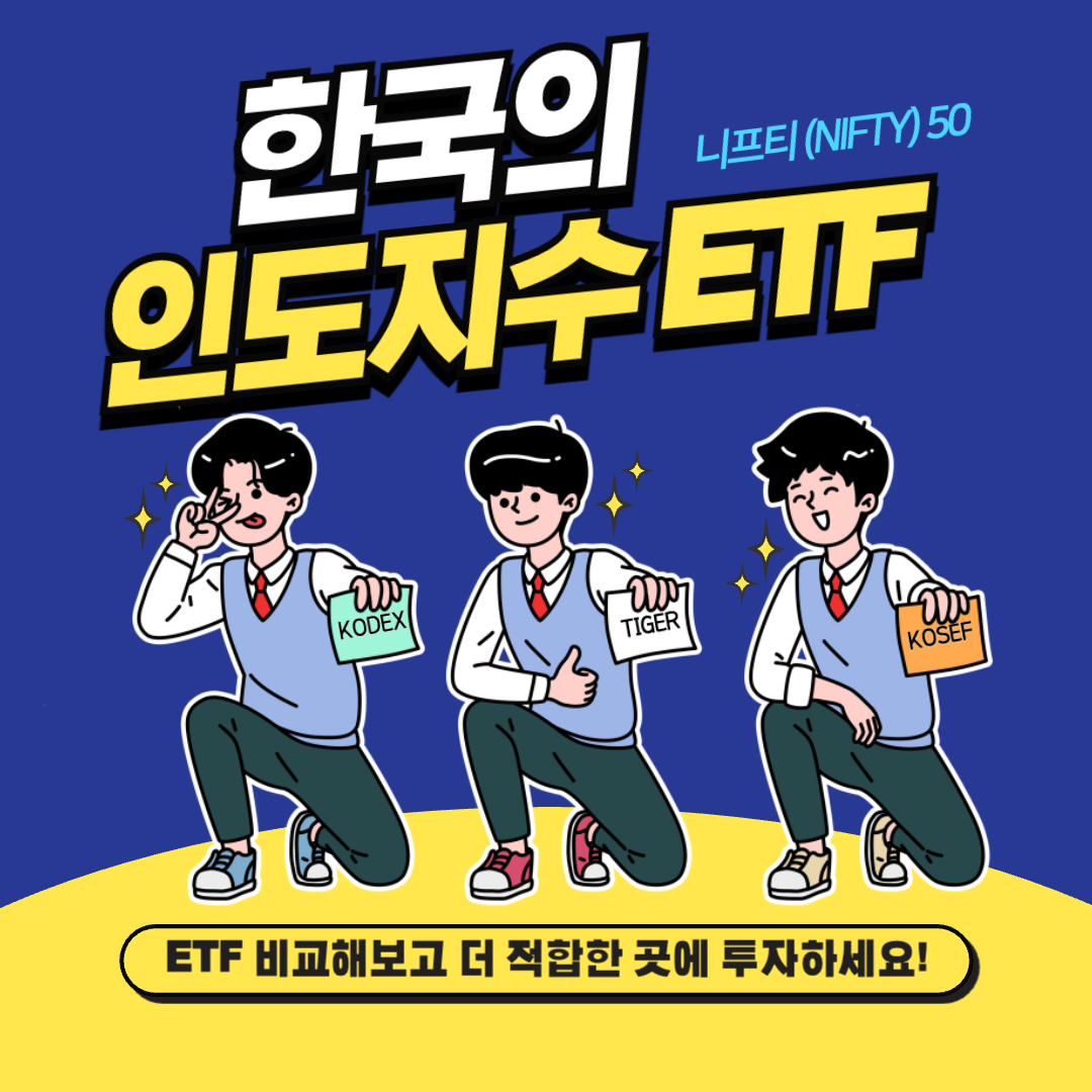 한국에서는 2023년부터 본격적으로 인도 Nifty 50 지수를 추종하는 ETF들이 출시되었으며, 대표적으로 KODEX, TIGER, KOSEF 세가지가 있습니다.