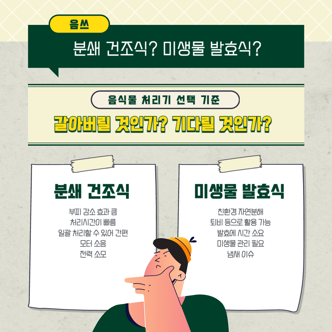 음식물 쓰레기 처리기 구매를 고민하고 있는 분들이라면 가장 먼저 고민하시는 부분이 바로 음식물 쓰레기 처리방식입니다.