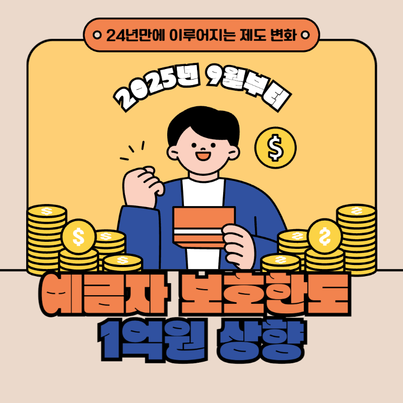 2025년 9월 1일부터 예금자보호 한도가 현행 5,000만원에서 1억원으로 상향됩니다.