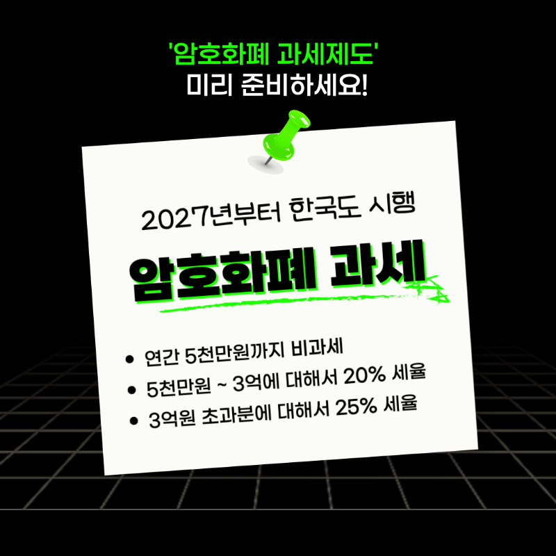 이상으로 2027년부터 본격 시행 예정인 한국 암호화폐 과세제도에 대해 알아보았습니다.
