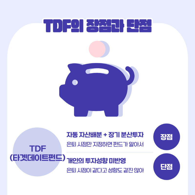 - 은퇴 준비를 장기적으로 하고 싶은 직장인 : 퇴직연금 계좌에 무엇을 넣어야 할지 고민된다면, TDF는 가장 무난한 선택입니다.