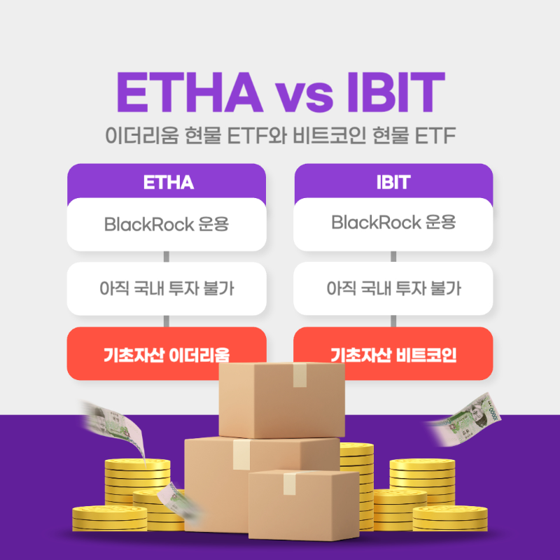 2025년 8월 현재, IBIT 및 ETHA는 미국 상장 ETF로, 국내에서는 직접 매수 불가합니다.