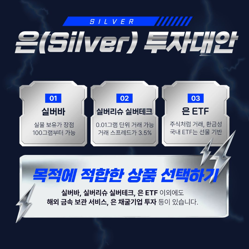 이는 은(Silver)을 실물 자산으로 손쉽게 소액 투자가 가능하도록 한 결정으로, 전국 모든 영업점에서 구매할 수 있다고 합니다.